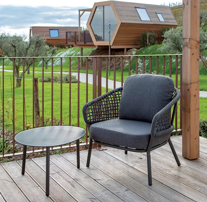 Az Atol kültéri designer ülőgarnitúra szett modern, kényelmes kialakításával és letisztult formájával tökéletes választás teraszra vagy kertbe. Vízáteresztő, gyorsan száradó kárpitozása és UV-álló anyagai gondtalan kültéri használatot biztosítanak, két színkombinációban rendelhető.