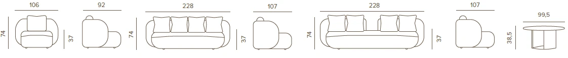 Cosy kültéri designer ülőgarnitúra letisztult és időtálló megjelenéssel. Vízáteresztő, gyorsan száradó kárpitozása és töltőanyagai, valamint UV-álló anyagai kifejezetten kültéri használatra készültek, így hosszú távon is praktikus és kényelmes megoldás.