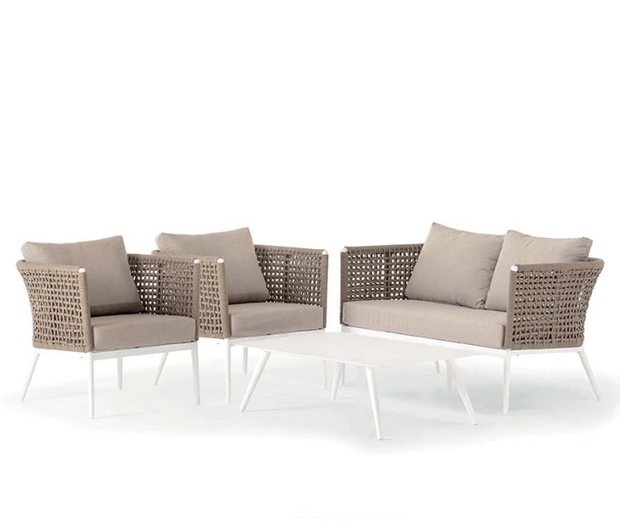 A Cuba kültéri designer ülőgarnitúra szett modern, kényelmes kialakításával és letisztult megjelenésével a terasz vagy kert központi darabja lehet. Vízáteresztő, gyorsan száradó kárpitozása és UV-álló anyagai gondtalan kültéri használatot biztosítanak, három színkombinációban rendelhető.