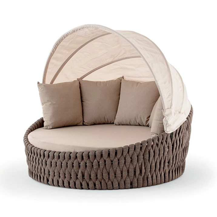 Az Eden napozóágy elegáns fonott dizájnjával és kényelmes kialakításával a kültéri pihenés tökéletes kiegészítője. Stabil alumínium váza, UV-álló kárpitozása és gyorsan száradó, vízáteresztő töltete mellett beépített árnyékolója biztosítja a zavartalan komfortot a napon.