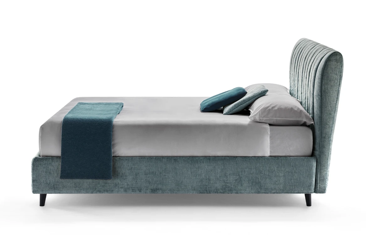 A Gaia olasz designer franciaágy elegáns megjelenésével és letisztult formavilágával emeli a hálószoba hangulatát. Rendelhető textil vagy bőr kárpitozással, széles színpalettában, lábai fa, fém vagy akár plexi kivitelben választhatók, többféle dizájnban. A minőségi anyaghasználat és az igényes kivitelezés garantálja a tartósságot és a prémium megjelenést. Opcionálisan billenő- vagy lift mechanikás ágyneműtartóval is rendelhető, amely tartalmazza a rugalmas ágyrácsot.