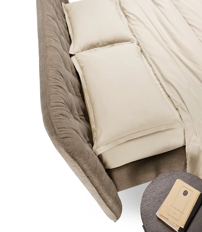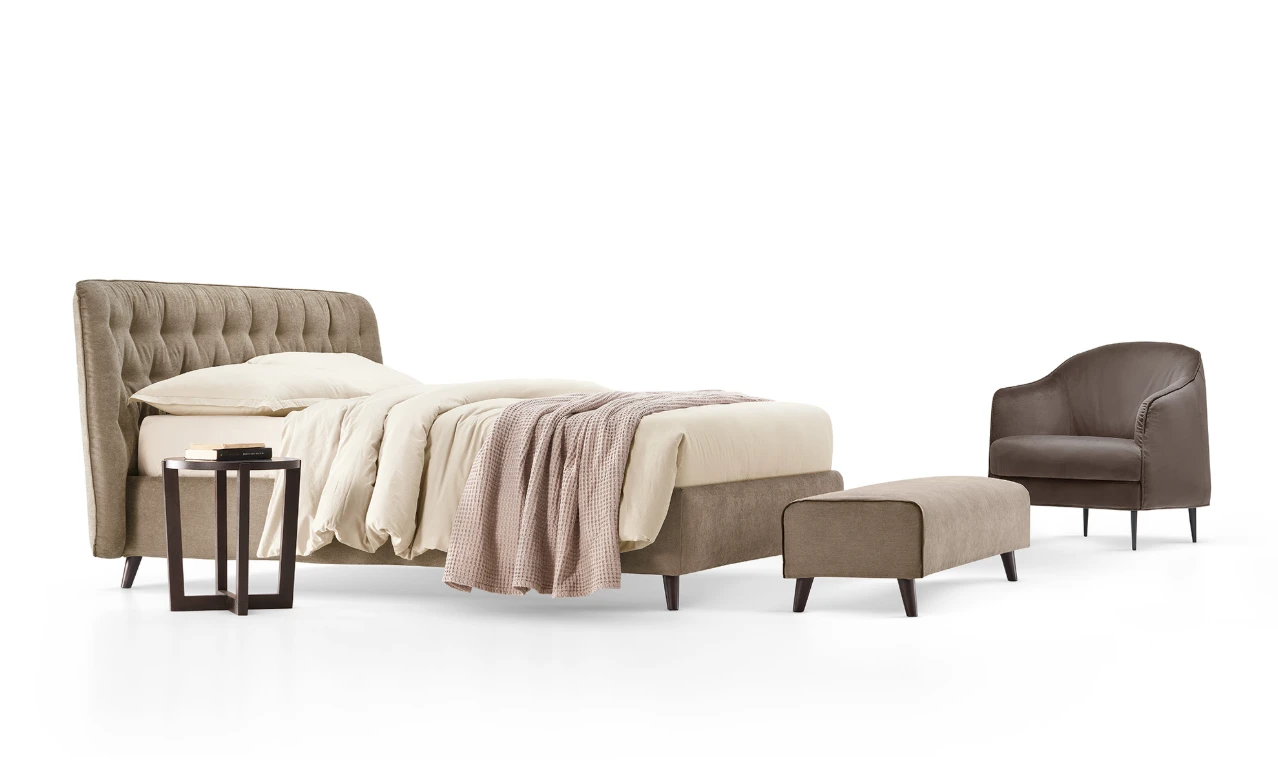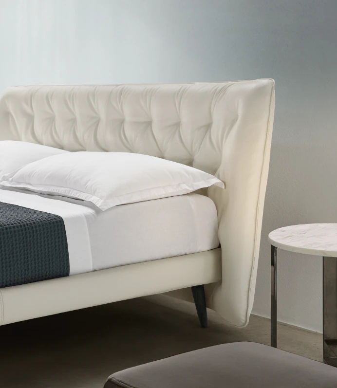 A Gea olasz designer franciaágy eleganciáját a tűzött fejvég és a letisztult formavilág teszi igazán különlegessé. Rendelhető textil vagy bőr kárpitozással, széles színpalettában, lábai fa, fém vagy akár plexi kivitelben választhatók, többféle dizájnban. Minőségi anyaghasználata és igényes kivitelezése garantálja a tartósságot és a prémium megjelenést. Opcionálisan billenő- vagy lift mechanikás ágyneműtartóval is rendelhető, amely tartalmazza a rugalmas ágyrácsot.
