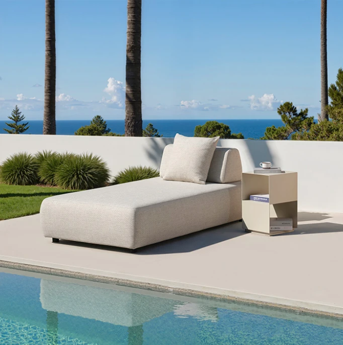 A Geometry napozóágy a kifinomult minimalizmus és a tartósság találkozása. Könnyű, mégis stabil alumínium szerkezete ellenáll az időjárásnak, míg UV-álló, gyorsan száradó kárpitozása mindig friss érzetet ad. A vízáteresztő töltetnek köszönhetően eső után is hamar használatra kész — a kényelem itt nem alkalom, hanem állandó élmény.
