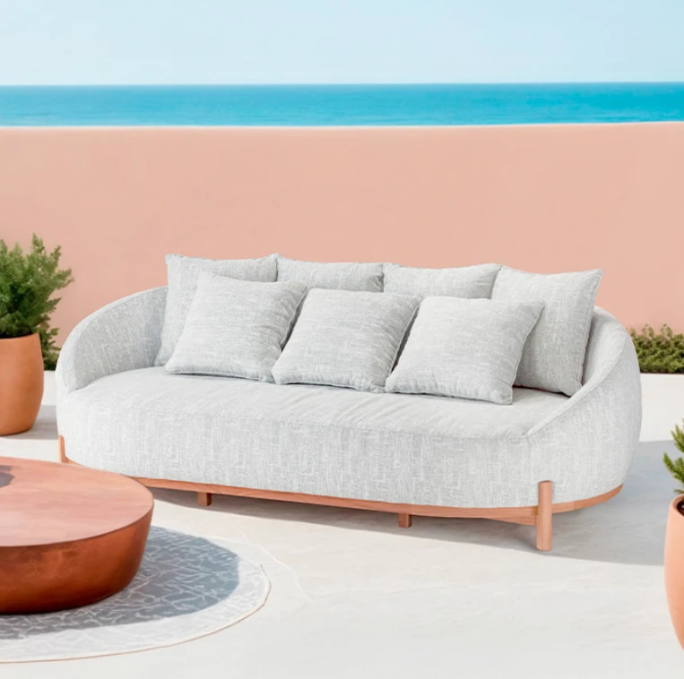 A Moon kültéri designer ülőgarnitúra szett letisztult formájával és modern megjelenésével emeli a terasz vagy kert hangulatát. Kényelmes kialakítása, vízáteresztő és gyorsan száradó kárpitozása, UV-álló anyagai, valamint tartós tikfa lábai kifejezetten kültéri használatra készültek.