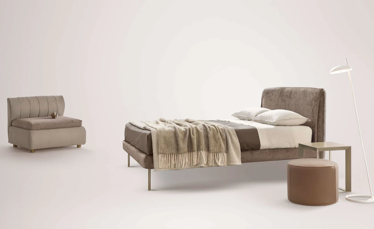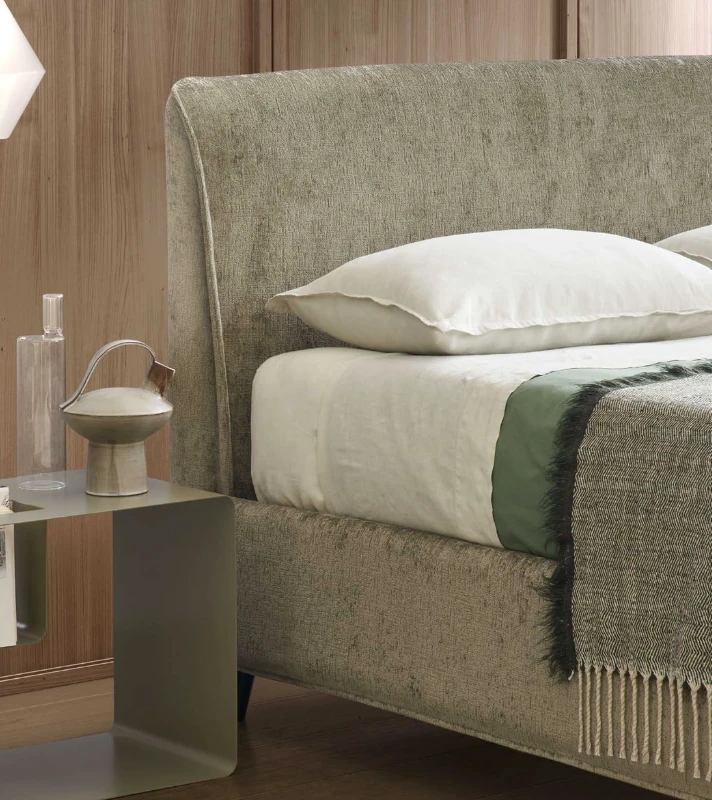 A Nadir olasz designer franciaágy kifinomult stílusával és prémium megjelenésével emeli a hálószoba hangulatát. Rendelhető textil vagy bőr kárpitozással, széles színpalettában, lábai fa, fém vagy akár plexi kivitelben, többféle dizájnban. Minőségi anyaghasználata és igényes kivitelezése garantálja a tartósságot. Opcionálisan billenő- vagy lift mechanikás ágyneműtartóval is rendelhető, amely tartalmazza a rugalmas ágyrácsot.