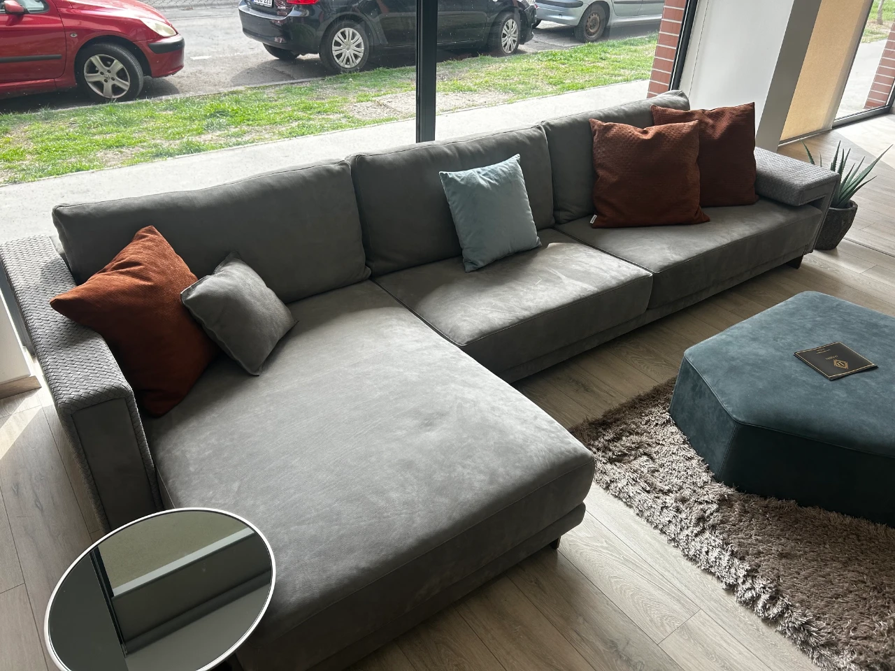 Gyönyörű extra puha nubuk marhabőr kárpitozással, rejtett vasalattal és fonott bőr karfákkal, ami azonnal feldobja otthonát. A két elem külön is használható, így maximális rugalmasságot nyújt a tér kihasználásában. A különleges szín és a prémium anyagok garantálják, hogy ez a garnitúra igazi ékköve lesz nappalijának! 🌟