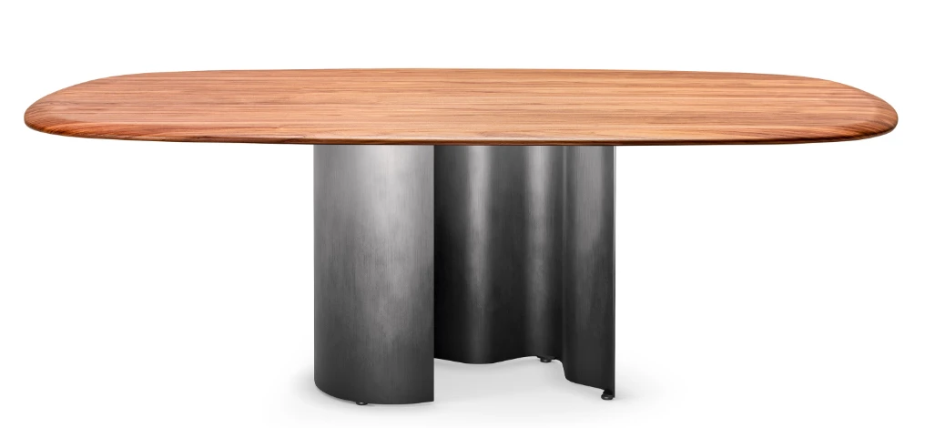 Merész formavilág, letisztult anyagok. Ez az asztal fém lábával és fa topjával igazán karakteres, extrém megjelenést biztosít. A láb színe több lehetőség közül választható ki csakúgy mint a fa top színe, hogy tökéletesen illeszkedjen otthonának egyedi stílusához. Az anyagmintákat szalonunkban megtekintheti.