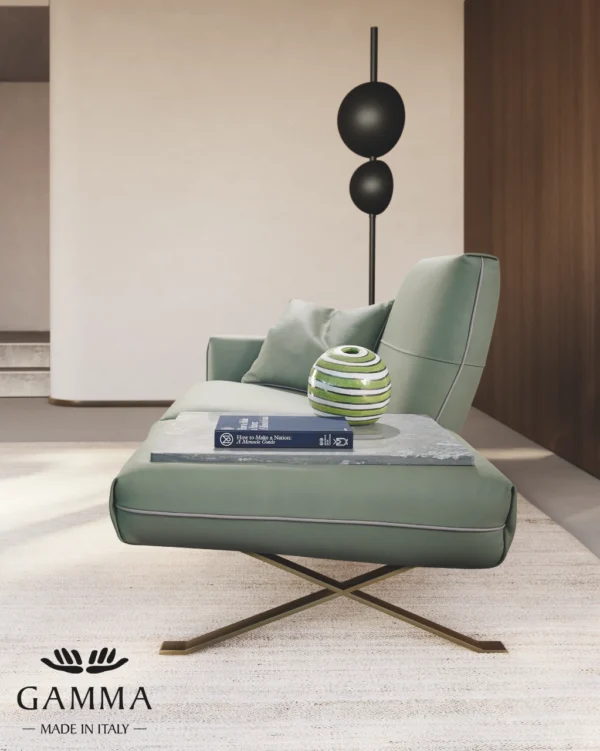 A masszív, de egyben légies lábakon nyugvó tömörfa váz elegáns sziluettje légies alappal, központi láb nélkül áll, még a teljesen kinyújtott 240 cm-es változatban is. A karcsú és ívelt háttámla és ülés, tökéletesen ergonómikus és bármilyen kárpitozásra alkalmas. A fémből készült, keresztben álló lábazat könnyedén viseli a súlyt, külső légies megjelenése ellenére is. A Rialto tökéletesen ötvözi a funkciót és a formát, és tökéletes helytakarékos megoldás.