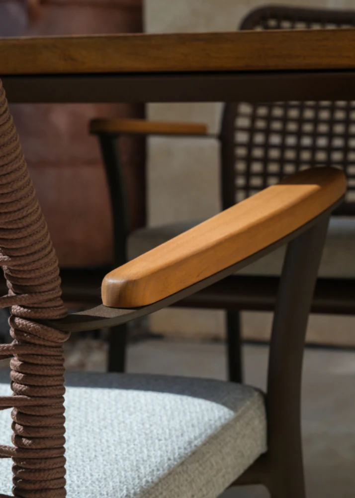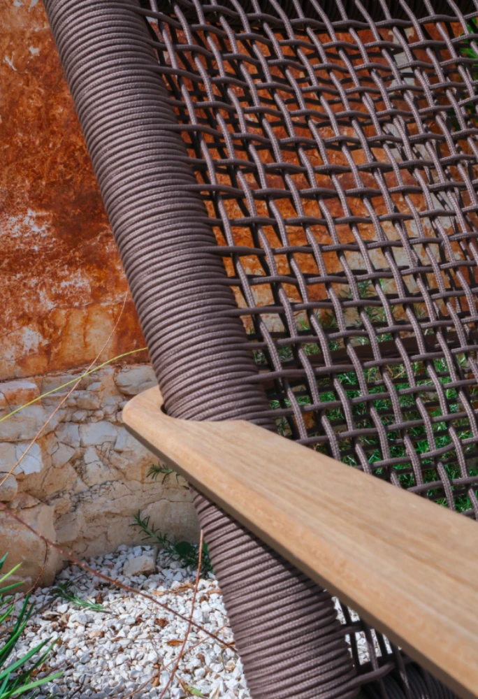 A Sahara kültéri designer ülőgarnitúra modern megjelenésével és légies részleteivel igazi karaktert ad a terasznak. Alumínium szerkezete stabil és időtálló, a kötélből kialakított háttámla pedig egyedi, könnyed dizájnt kölcsönöz. Vízáteresztő, gyorsan száradó kárpitozása és UV-álló anyagai kifejezetten kültéri használatra készültek, hogy a kényelem hosszú távon is garantált legyen.