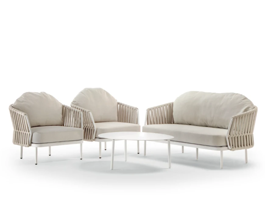 A Soho kültéri designer ülőgarnitúra szett modern, letisztult formájával és dizájnos fonott háttámlájával stílust visz a teraszra vagy kertbe. Kényelmes kialakítása, vízáteresztő és gyorsan száradó kárpitozása, valamint UV-álló anyagai kifejezetten kültéri használatra készültek, és több színkombinációban rendelhető.