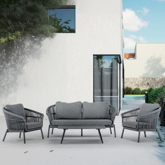 A Tropea kültéri designer ülőgarnitúra szett modern, kényelmes kialakításával emeli a terasz vagy kert hangulatát. Vízáteresztő, gyorsan száradó kárpitozása és UV-álló anyagai gondtalan kültéri használatot biztosítanak, két színkombinációban rendelhető.