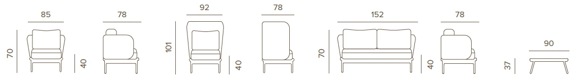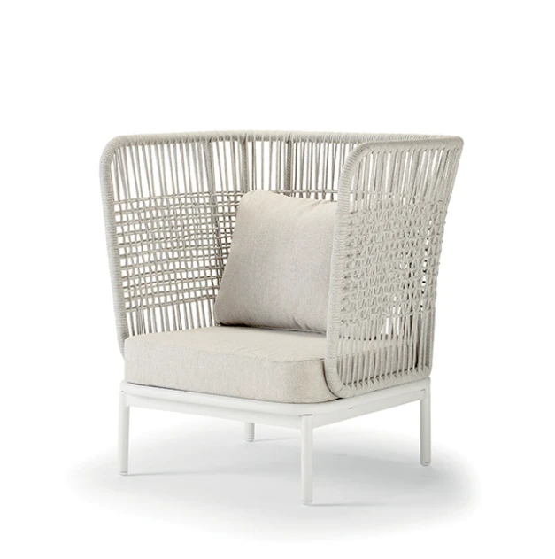A Yolk kültéri designer ülőgarnitúra szett modern, kényelmes kialakításával és letisztult formájával stílust visz a teraszra vagy kertbe. Vízáteresztő, gyorsan száradó kárpitozása és UV-álló anyagai kifejezetten kültéri használatra készültek, rendelhető magasított háttámlás fotellel, és két színkombinációban érhető el.